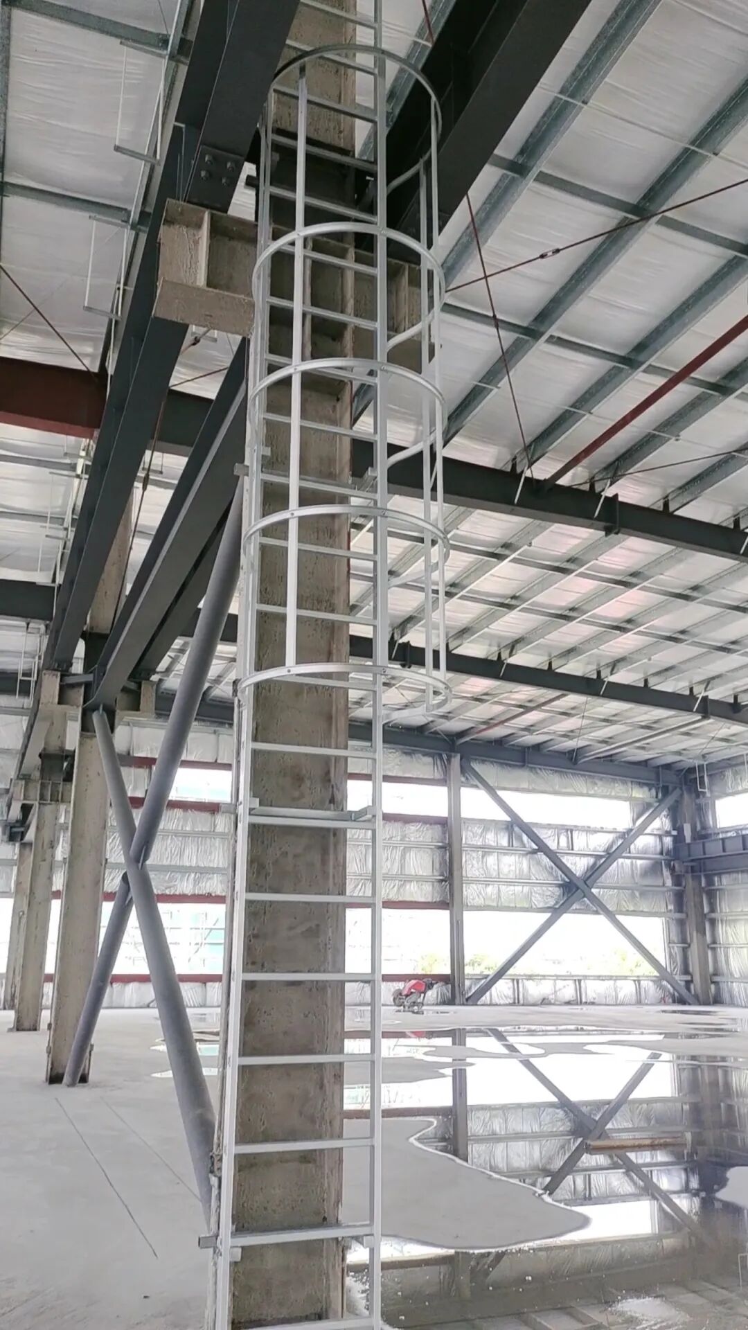 淮安中天钢铁项目选用的单梯段屋面检修爬梯,依据厂房屋面高度与结构特点定制,梯身与屋面架构紧密贴合,整体稳定性优异,同时符合 GB/T 17888.4-2020 安全标准,为检修人员提供安全、便捷的垂直通行条件;