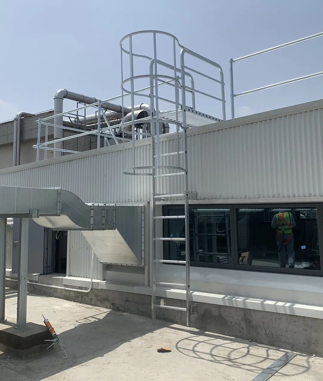 高屋面安全优化:当屋面攀登高度超过 10 米时,可增设休息平台(间距控制在 5-6 米),如上海新泉项目通过多梯段带休息平台设计,缓解检修人员高空攀登疲劳,进一步提升作业安全性。